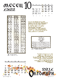 Благодарение на Анелия Донева, на тази страница можете да намерите за сваляне PDF версия на хартиен календар за година 7522 от Българския календар съответстваща на 2017 година по съвременния Григориански календар.